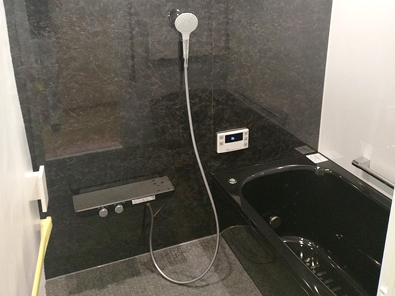 浴室のカラーが黒で、黒は高級感がある反面、汚れが目立ちやすいというデメリットがあります。