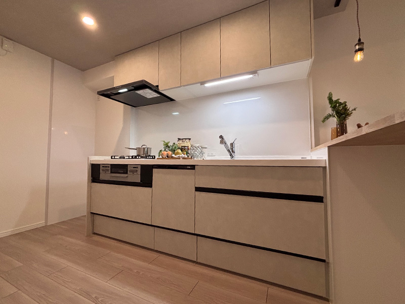 ・キッチンからはリビング全体を見渡せる間取りとし、小さなお子様がいらっしゃるご家庭でも、家事をしながら見守ることができるよう配慮いたしました。